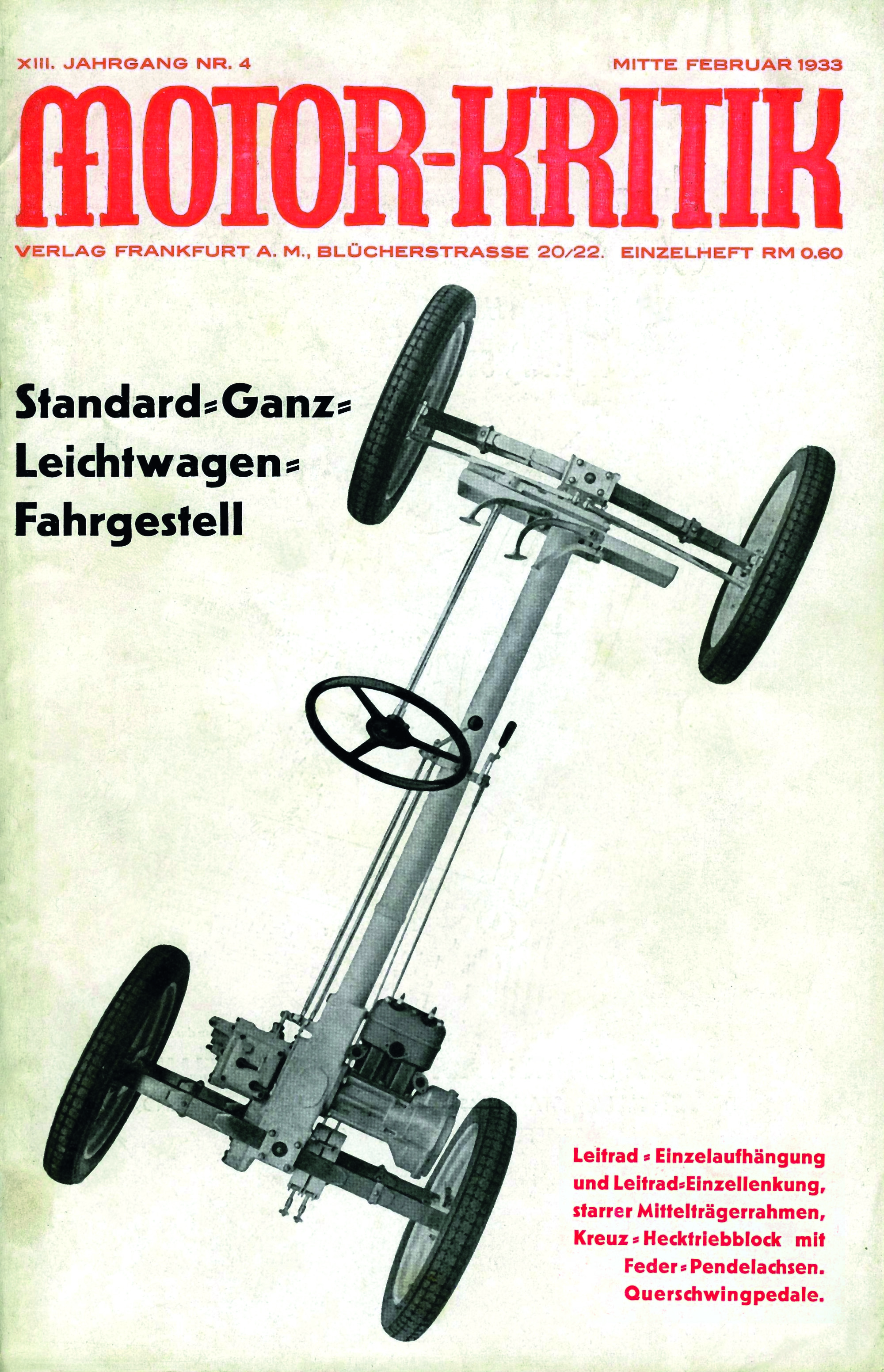 - Cover of Motor-Kritik showing the chassis oft he Standard Superior, Germany, 1933.
