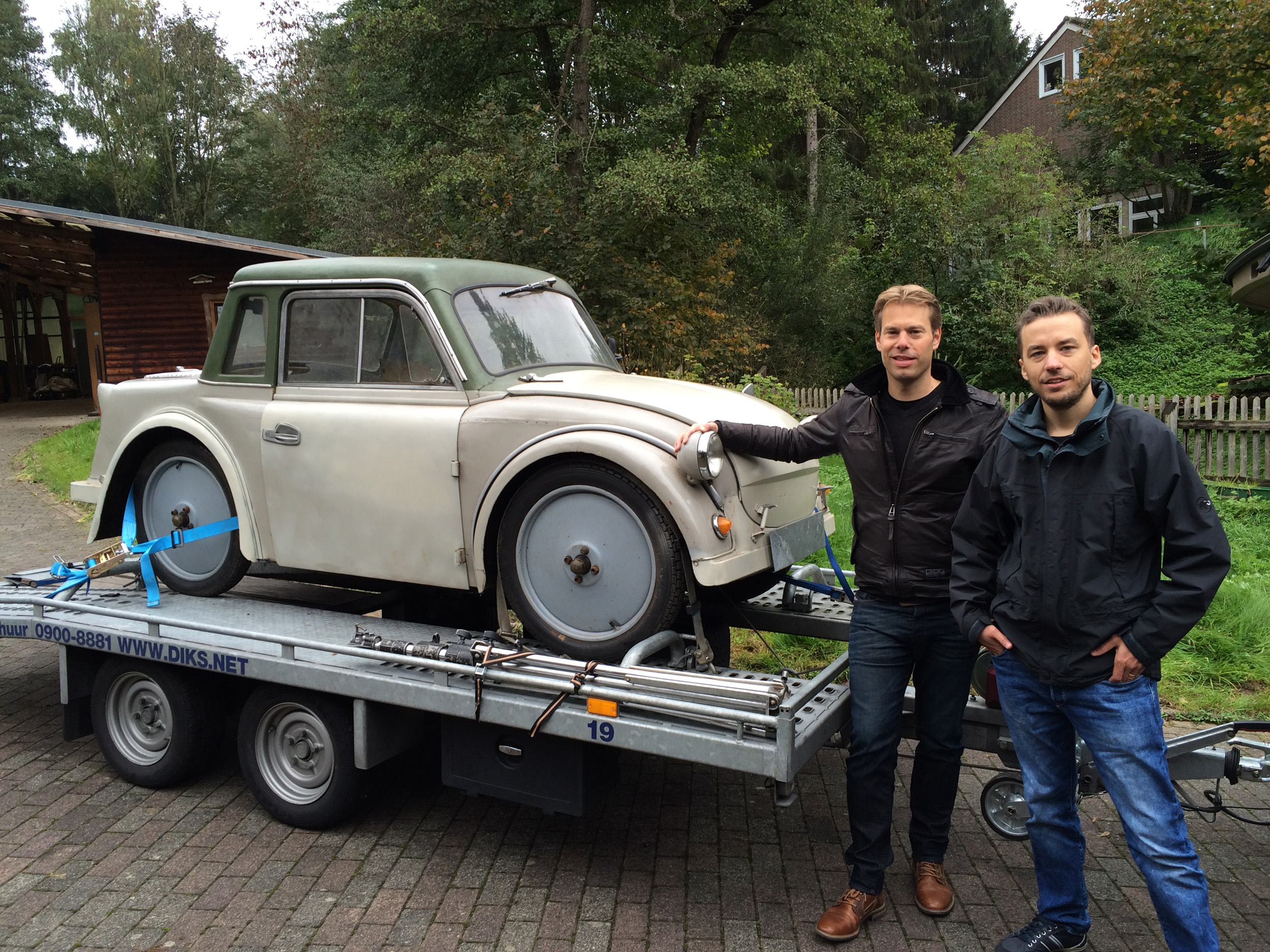 - Paul Schilperoord (left) and Lorenz Schmid (right) with the Standard Superior type I project car.