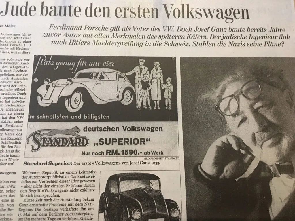 Back in 2005 I was going to a family meeting which is being organized by the Ganz-family about every 5 years. While it was nice to meet this big family again, I actually didn’t know my relatives very well. When Jürg, a cousin of my father, hold a little speech, he showed at the very end an article of Swiss newspaper “Tagesanzeiger” about one of our relatives who died in 1967 in Australia: car engineer and journalist Josef Ganz. I remembered that once my grand mother had mentioned very quickly that one of her cousins worked with Ferdinand Porsche. Unfortunately at that age I was too young to understand what this really meant. After Jürg’s speech I went to check the newspaper article in detail. As a car enthusiast and editor in chief of a model car magazine I was very interested in the story, although I imagined it to be a very old article. How wrong I was: it was published just a few months ago, in March 2005 if I remember well! I saw that it was based on the research of Dutch journalist Paul Schilperoord.