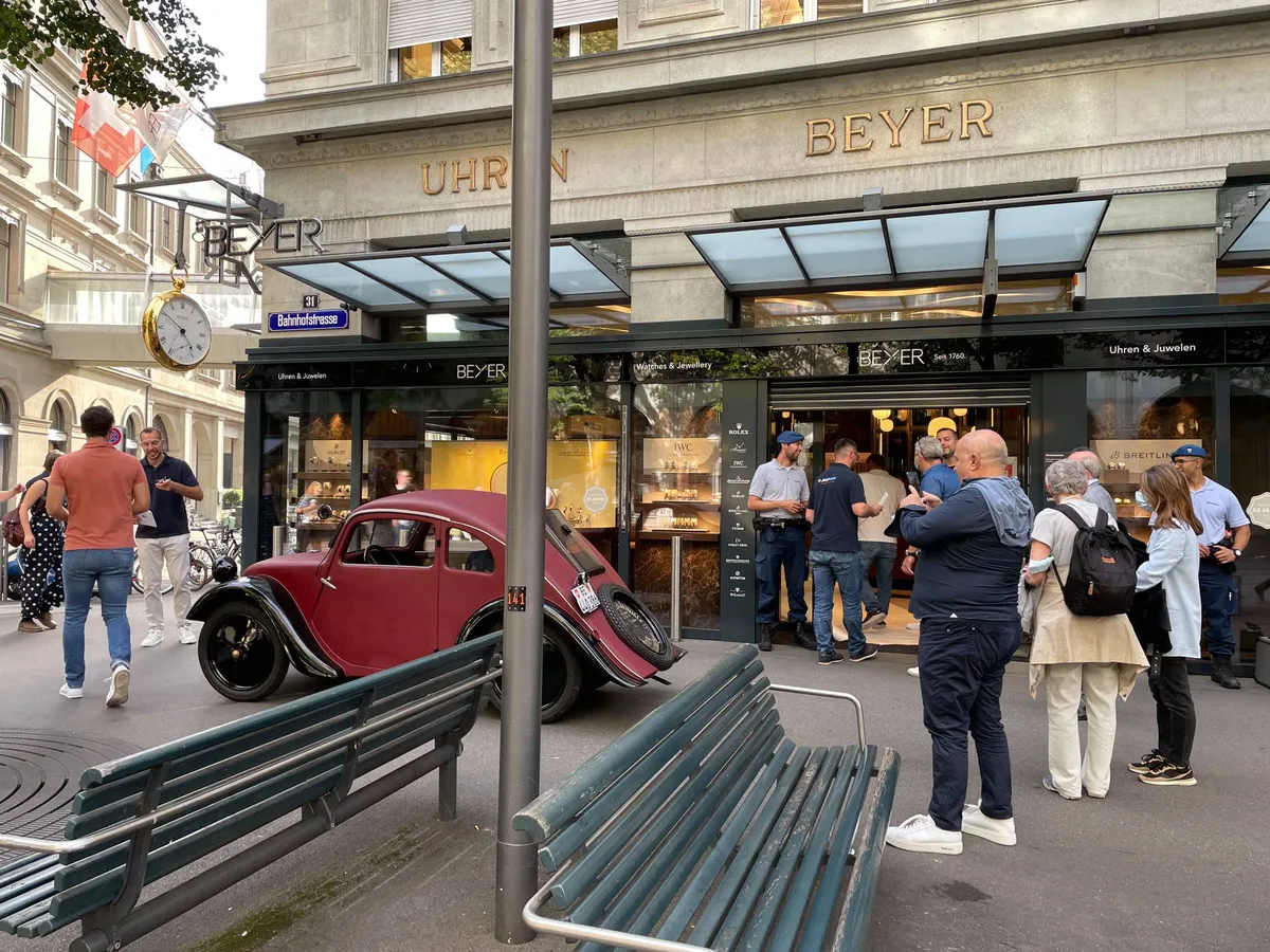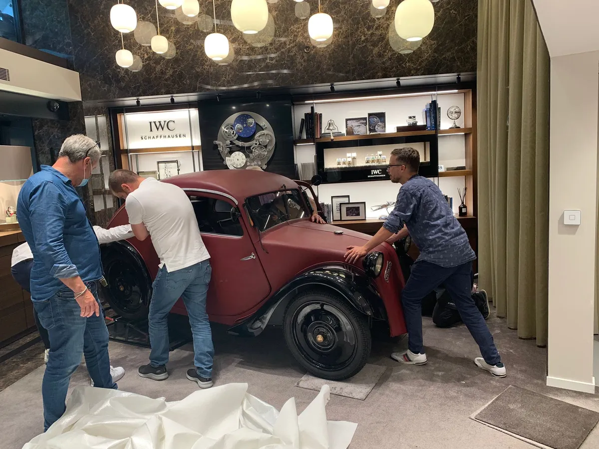 After this trip, the vehicle was on display for a fortnight in the beautiful shop of Beyer Chronometrie. Read also the report from Beyer Chronometrie.
